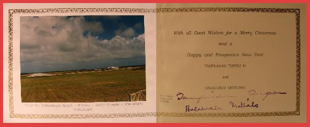 Handsignierte Weihnachtskarte von HM King Taufa´ahau Tupou IV. und HM Queen Halaevalu Mata´aho