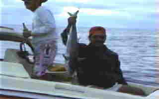 Am Wochenende ging es meistens mit Karl´s selbstgebautem einmotorigen Boot (35 PS Mariner) mit kleiner Kajüte zum Fischen. Mano der Schweißer und Napole aus der Tischlerei waren mit von der Party. Gelegentlich verabredeten wir uns auch mit Dini Vete, Angestellter der Royal Brauerei und Besitzer eines Fotoladens, zum Wettfischen mit einigen Kisten Bier ( Deputat ), mit Übernachtung auf einer unbewohnten Insel, oder zu einer Umrundung der ca. 20 km entfernt gelegenen Felseninsel ´Eua. ´Eua ist ein recht hohe Vulkaninsel mit vielen Auswaschungen, die sich zu Höhlen ausgebildet haben. Bei schlechter Sicht oder rauher See fährt man beim Rückweg die Westseite bis zu einem weißen Felsen und dann exakt 90° gerade aus, um den Jachthafen Nuku´alofa zu erreichen. Bei einer Umrundung der Insel mit starker Dühnung, so stark das man im Wellental kein Land mehr sehen konnte, machte ich also gerade Videoaufnahmen als ein Brecher mitschiffs über uns hinwegging. Meine Kamera und ich wurden pitschnaß und ich machte die Bemerkung als ich mir das Salzwasser von den Lippen geleckt hatte: Verry big water. So bin ich in “ Fisherman “ Kreisen zu meinem Spitznahmen Big Water gekommen. |